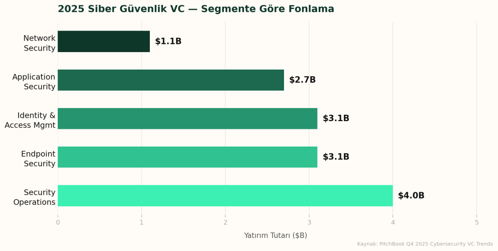 Segment bazında 2025’in lideri net: Security operations $4 milyar ve 229 anlaşmayla zirveye oturdu. Gerçek zamanlı tespit, müdahale ve otomasyonun kesiştiği bu alan, AI destekli tehditlerin en görünür olduğu yer ve belli ki yatırımcıların da çok ilgisini çekiyor.